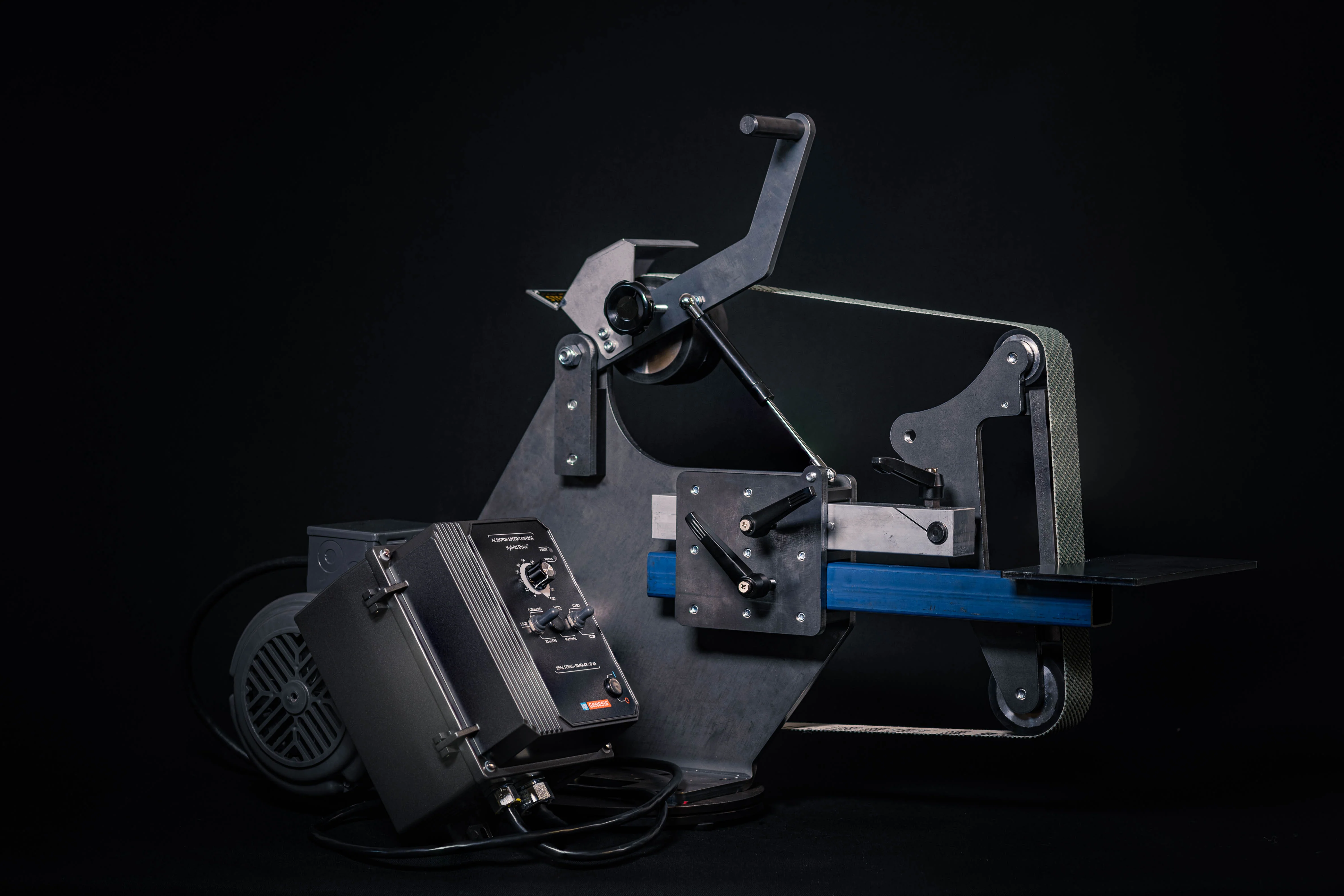 Our 2x72" Steele Kit Grinder is the machine that gets you into the larger 72" belt, without breaking the bank. The 3/8" thick steel plate construction gives you an extremely rigid platform and 2 tooling arm slots allow the use of our wide range of accessories. Best used with a 2-horsepower motor (for a 56C frame) and KBAC 27D VFD, this machine can handle almost anything you can throw at it.Â
