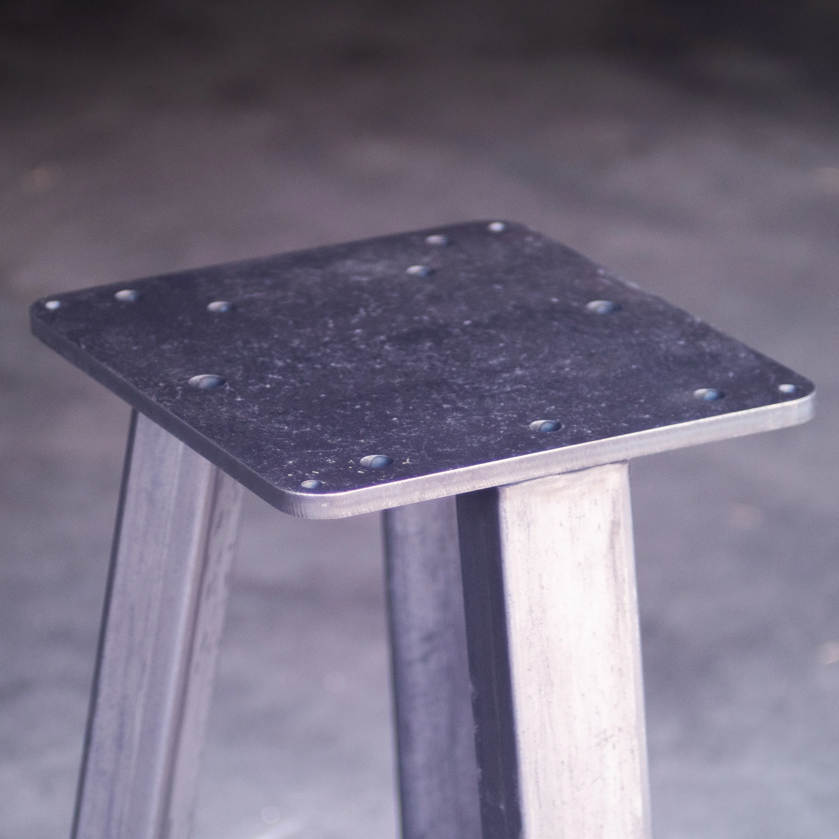 The top of this stand has holes for mounting the anvil itself, mounting tool racks, tool trays, and pouring the legs full of sand to deaden the noise.